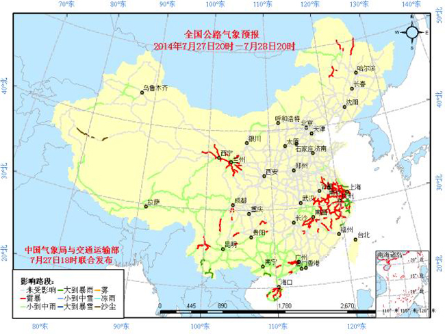 中国气象局与交通运输部联合发布全国主要公路气象预报