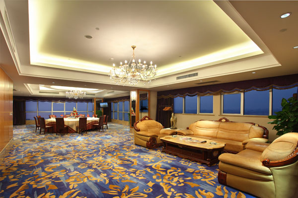 酒店的空间结构以人体舒适的完美理念规划,拥有包括行政豪华套房、湖景双人房、豪华双人房、湖景单人房等一期128间客房,二期建成客房数达350间,配备独立行政楼、书画院及和超豪华迎宾楼。透过房内落地窗都可以看到钱资湖晨雾初霁,落日熔金的迷人景色。酒店有5千平米的独立式阳光生态花园餐厅、大型多功能宴会大厅、规格齐全的会议室、风格各异的中西餐厅、威尼斯餐厅等完善的配套实施,超大的室内游泳池、健身房、网球场、雪茄吧等娱乐设施一应俱全,是会议、商务接待、贵宾宴请的理想场所。